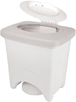 Attractive and easy to use. Sturdy molded diaper pail has a flip down lid. Foot pedal operates lid so both hands are free. Built-in deodorizer holder. 16" high x 13.5" wide x 10.5" deep.